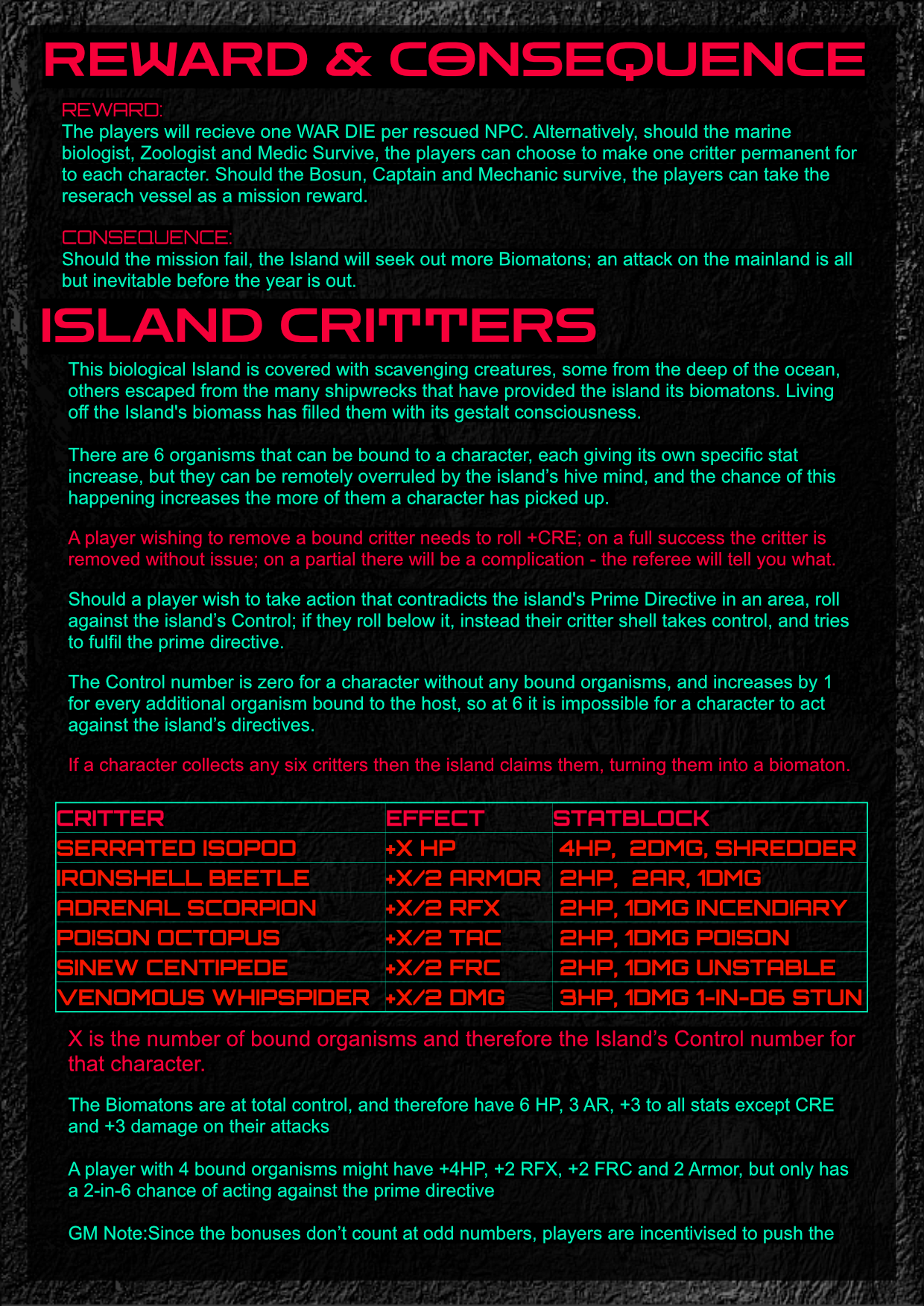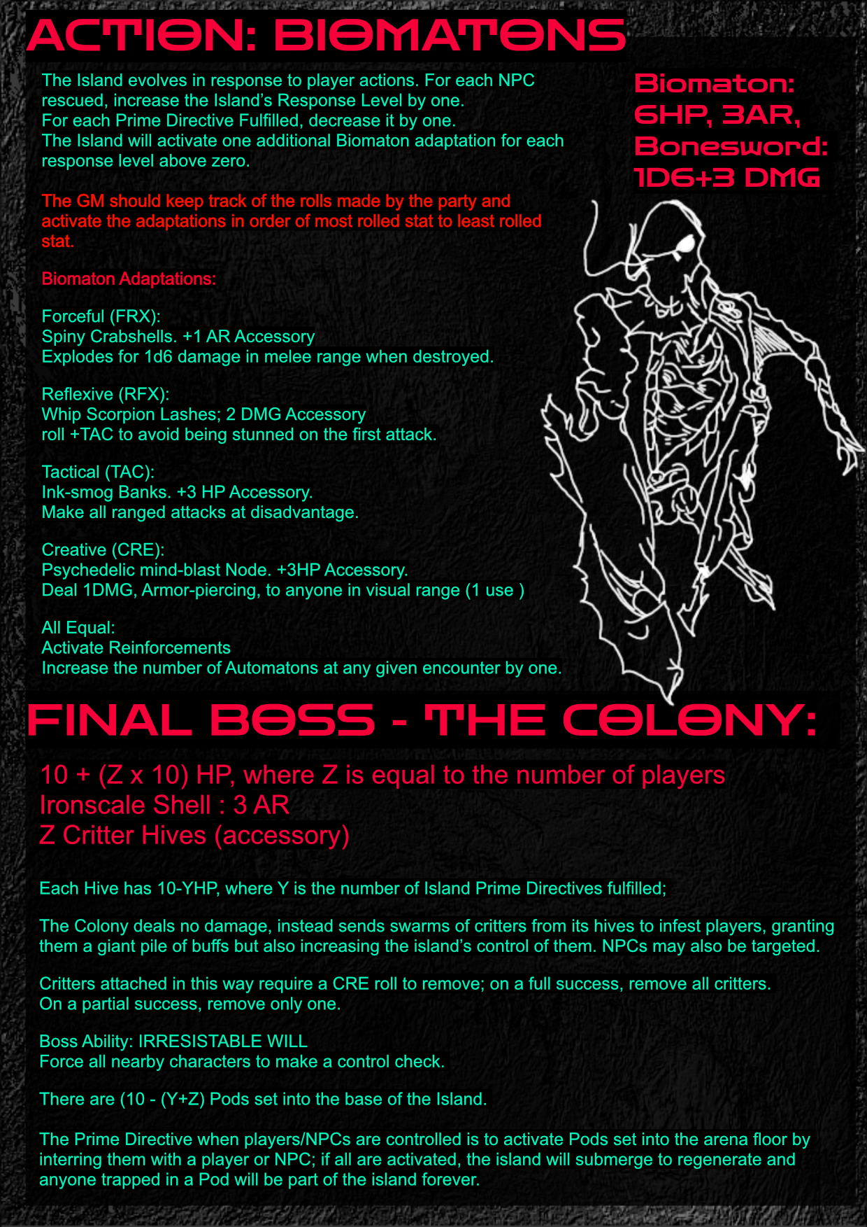 It features enemies that evolve in response to player rolls, a mechanic to sacrifice a player's self-control in return for increased power, and a whole mess of NPCs and creepy-crawlies to interact with.